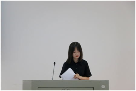 首先,由经济学院分团委副书记肖嘉程同学发言。肖嘉程同学介绍了本次迎新宣讲会的流程与经济学院各学生组织的概况,并鼓励2021级全体本科生积极加入各学生组织,参与学院各项活动,同时祝愿同学们能够在经济学院这个大家庭中收获知识、经验和友谊。
