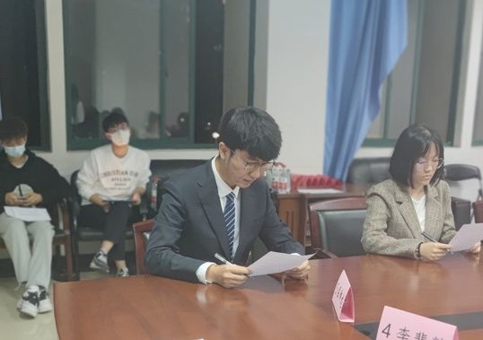 首先,由主持人介绍评委老师以及比赛赛制。32名参赛同学被分为四组进行无领导小组讨论,在5分钟的阅读时间后,依照选手序号,每位选手将进行1分钟的个人发言,而后是20分钟的小组讨论时间,最后再由组内派出一位代表进行5分钟的小组成果汇报。