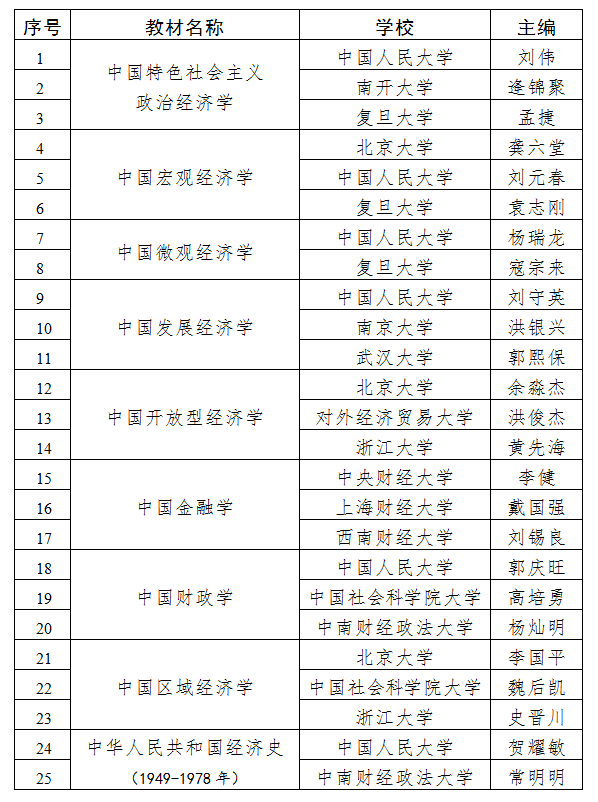 10月28日,国家教材委员会办公室公布教育部首批中国经济学教材编写入选学校和团队名单。杨灿明教授领衔主编的《中国财政学》和常明明教授领衔主编的《中华人民共和国经济史(1949-1978年)》成功入选。《中华人民共和国经济史(1949-1978年)》编写团队由来自中南财经政法大学、中国社会科学院、中国政法大学、南开大学、西南大学、湖南工商大学、聊城大学、扬州大学等科研院所的知名专家组成。经资格审查、书面审核、会议答辩和面向社会公示及异议复核,首批中国经济学教材编写共有13所学校、25个团队入选。