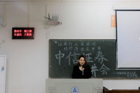 (图2:陈蔚竹女士向同学们介绍了中信证券公司)