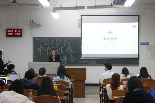 随后,陈蔚竹女士介绍了中信证券公司的业务,并详细讲解了公司财富管理和经纪业务的具体流程。紧接着,陈蔚竹女士重点讲解了有关校园招聘的流程,公布了中信证券公司2022年度的招聘人数及招聘要求,并向同学们介绍了相关工作的具体工作内容以及具备不同能力的职员所适合的工作岗位。