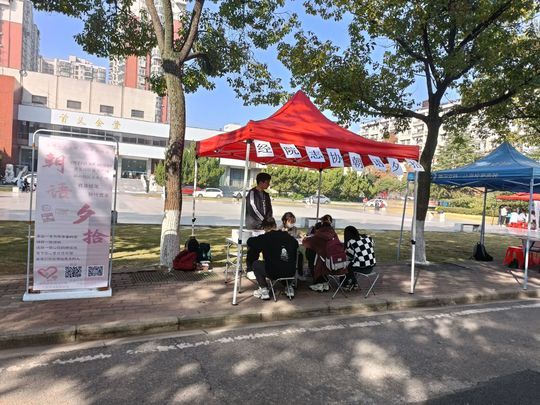 (图1:志愿者在校园内设置活动摊点)