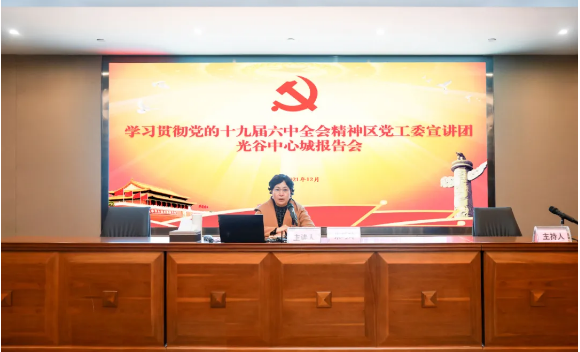 12月16日,学习贯彻党的十九届六中全会精神东湖高新区党工委宣讲团光谷中心城报告会在光谷科技大厦举行。湖北省委、武汉市委宣讲团专家成员、半岛线上平台朱巧玲教授作宣讲报告。