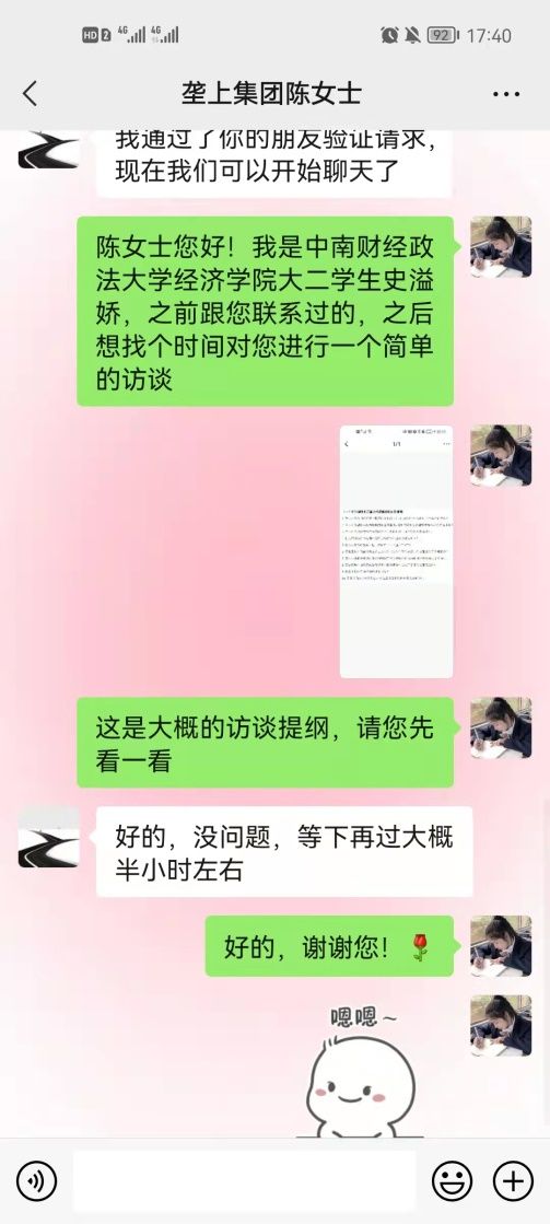 出于疫情严峻形势的考虑,小组原定的线下访谈改为线上进行,小组成员通过微信语音聊天的形式对垄上集团的陈女士进行了访谈,充分了解了集团的助农模式以及助农方向,并结合所学知识进行了总结研究。