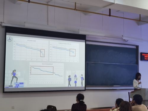 其次,作为专业分流之后成立的新班级委员会,国商2001班史溢娇同学在班级概况及班委组成、班级班规制定、本学习班级规划及班级展望四个部分进行了分享,指出了班级在高代课程挂科率偏高的问题,并给出了详细的方案以期提高本班成绩。