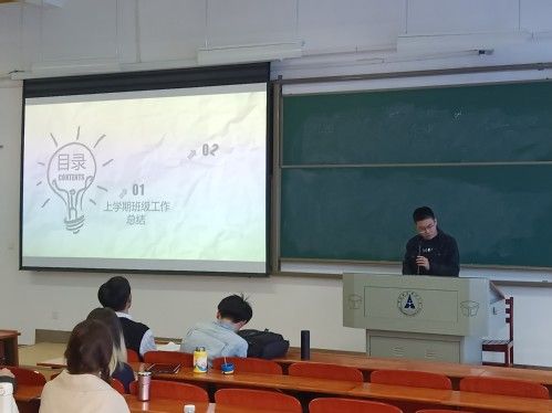 接下来,经实2001班肖欣如同学就班级建设、学风建设、思想建设和文体建设四个方面进行了班级计划展示,并提出了重点改进查寝和考勤工作的建议,致力于建设一个更好的班级。