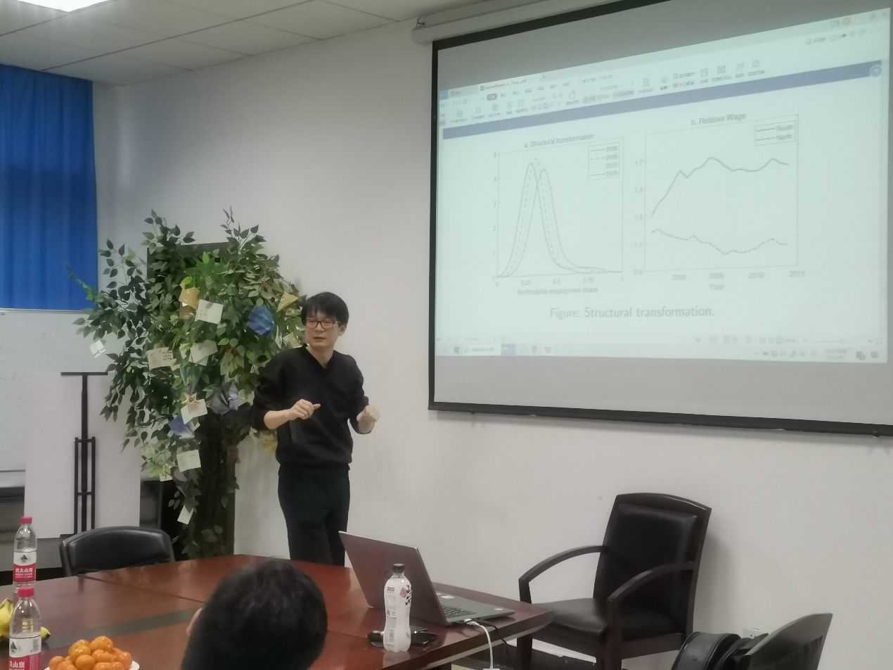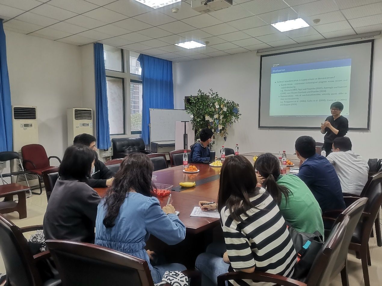 2022年4月7日18:30-20:30,经济中南第52期Seminar于文泉楼南207成功举办。本期Seminar我们有幸邀请到我院周上尧老师,周老师此次分享的文章题目为:Ageing, Migration and Sectoral Transformation.本次研讨会由我院教师李小克主持,周强评议,并邀请到袁凯华与袁华锡两位老师参与研讨。