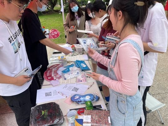 在固定摊点,不同大小、数量的纸箱分别对应不同的分值。分值累积到一定数量便可以兑换不同的奖品。同时,答对不同数量的题目也可以获得不同等级的礼品。此外,本次活动增设了扫码抽奖环节,小组成员会将抽奖结果与同学们送来的废旧纸箱的数量或者答题情况综合考虑,送出奖品。这极大地增加了本次活动的趣味性。有的同学为了能够兑换到喜欢的奖品,和朋友们一起将积攒已久的纸箱搬运至摊点处。有的同学不仅自己积极参与,而且邀请朋友们来参加活动,摊点处。活动结束后,小组成员不忘清理垃圾,整理活动物资,整理废旧纸箱并送至楼管处。