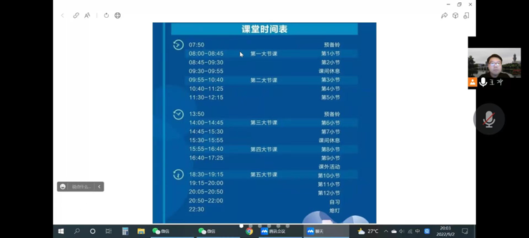 国商2202班班级导师王冲老师先与同学们在评论区做了预热活动,关心大家是否逐步适应了大学生活以及同学们在生活上是否遇到了问题。之后展示了由教务部出品的《教务一本通》,并介绍我校的培养体系以及国际商务的培养方案,同时也列举了不同课程大类的课程模块。最后强调了课堂作息时间表,列出一些重要考试的时间线,提醒同学们要遵守课堂秩序。