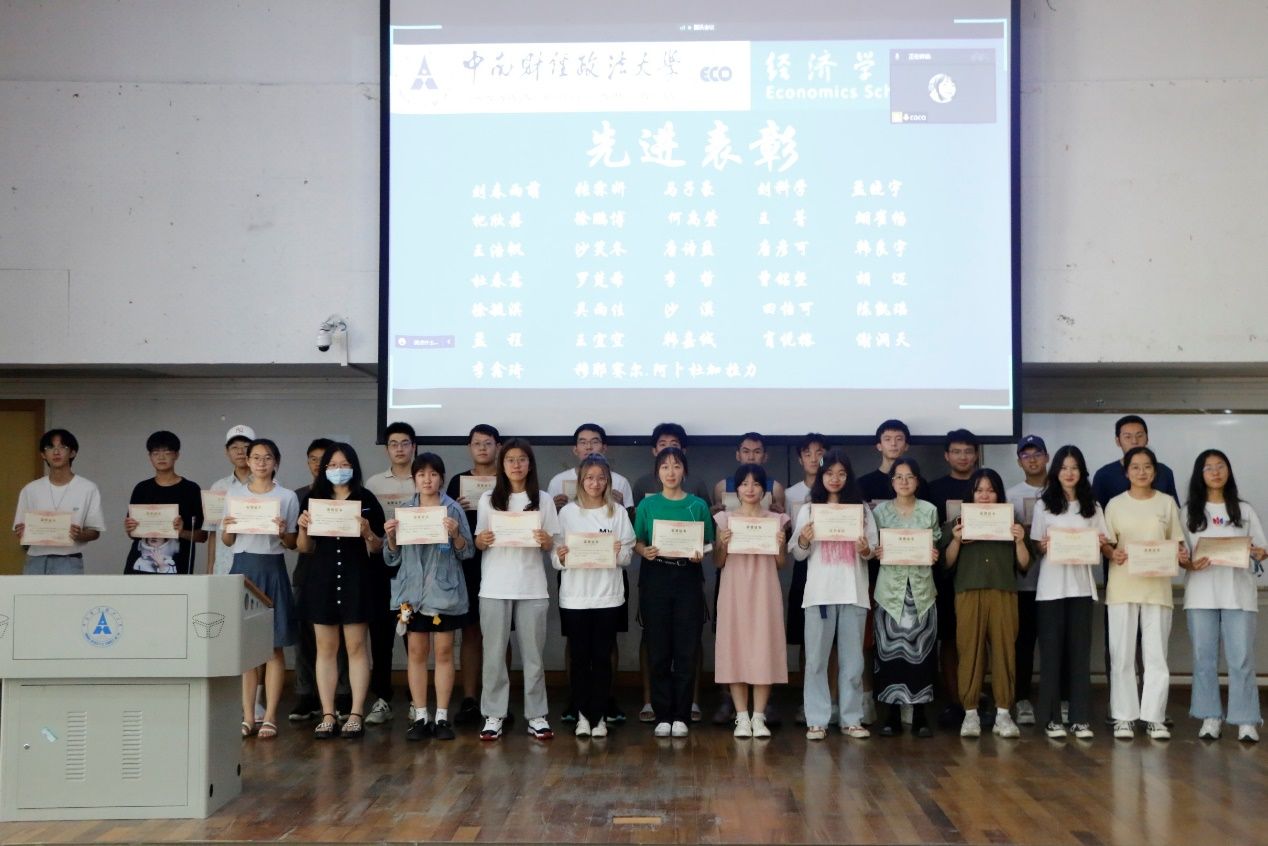 受到表彰的学生干部们先后上台领奖并合影留念。陈远瞻老师肯定了班干部们大一学年的工作并公布了新一届各班班委名单。他表示,2021级的同学们从首义校区搬迁至南湖校区的搬家工作流程长且繁琐,各班搬家负责人们付出了大量的时间与精力。他们这样甘于奉献、服务同学的精神值得赞扬。