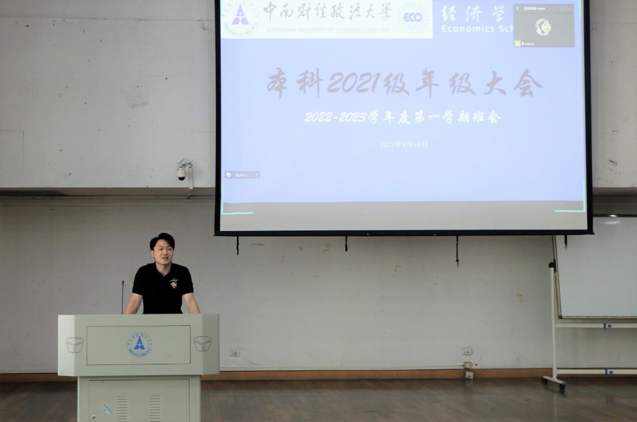 (学生记者唐彦可 摄影郭宇航)为做好新学期开学相关工作,增强师生交流,9月18日下午两点,经济学院2021级全体本科生在辅导员陈远瞻老师的组织下顺利召开了2022至2023学年度第一学期年级大会。大会采取线上线下相结合的方式召开,以腾讯会议为线上通道,方便暂缓返校的同学们线上参会。