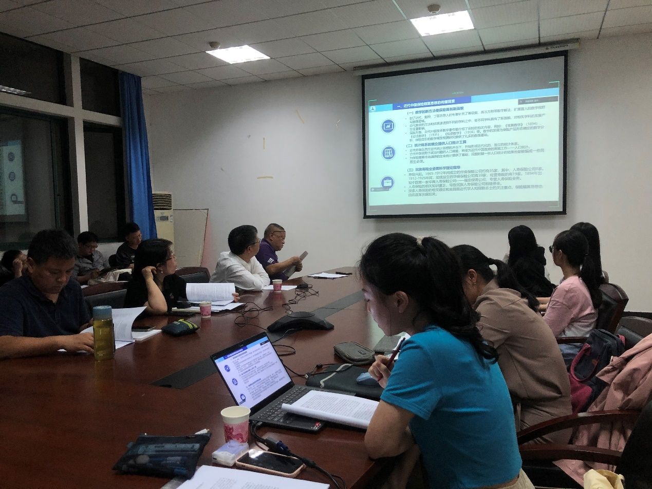 会议伊始,王文同学介绍了自己的研究成果梳理了保险精算思想传入我国的路径与流脉。