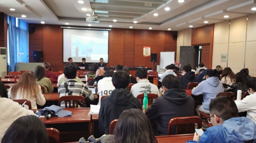 之后,就业服务中心副主任詹万明进行了就业形势分析报告。主要分为三个部分:其一,詹主任结合实际情况和学校历年数据分析了就业、留学情况,强调核对毕业生生源地信息,方便学校匹配意向就业单位和学生对学校就业信息的接收;其二,詹主任介绍了国家针对大学生稳就业、保就业的政策和武汉市的留汉政策,并鼓励同学们关注国家基层项目和地方基层项目,积极投身基层建设。詹主任提到,选调生越来越成为大学生服务基层的重要方式和国家选拔干部的重要途径;大家应当重视选调生的报考,积极主动服务基层;其三,对于保研比重上升、考研招生比重下降的趋势,詹主任建议考研的学生根据自己的实际情况慎重选择考研院校和报考专业,防止“扎堆报考”现象的出现。在备考过程中,既重视自身备考情况,也关注竞争对手进度,做好周全准备。