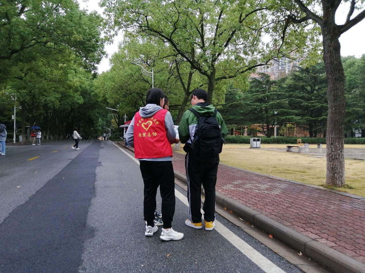 虽然活动当天天气状况不佳,但凛冽的秋风、绵绵的细雨始终无法熄灭小组成员们的热情,他们身着红马甲,不畏风雨穿行在首义校区,向来往的同学介绍银龄行动、保护长江、传温递爱及孝感活动。正是这样的满怀热情,吸引着更多的同学了解、加入志愿者行列,这也是对于志愿者而言最好的回报与动力。