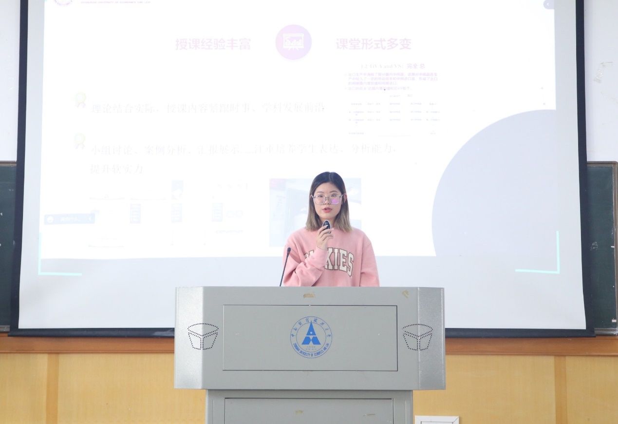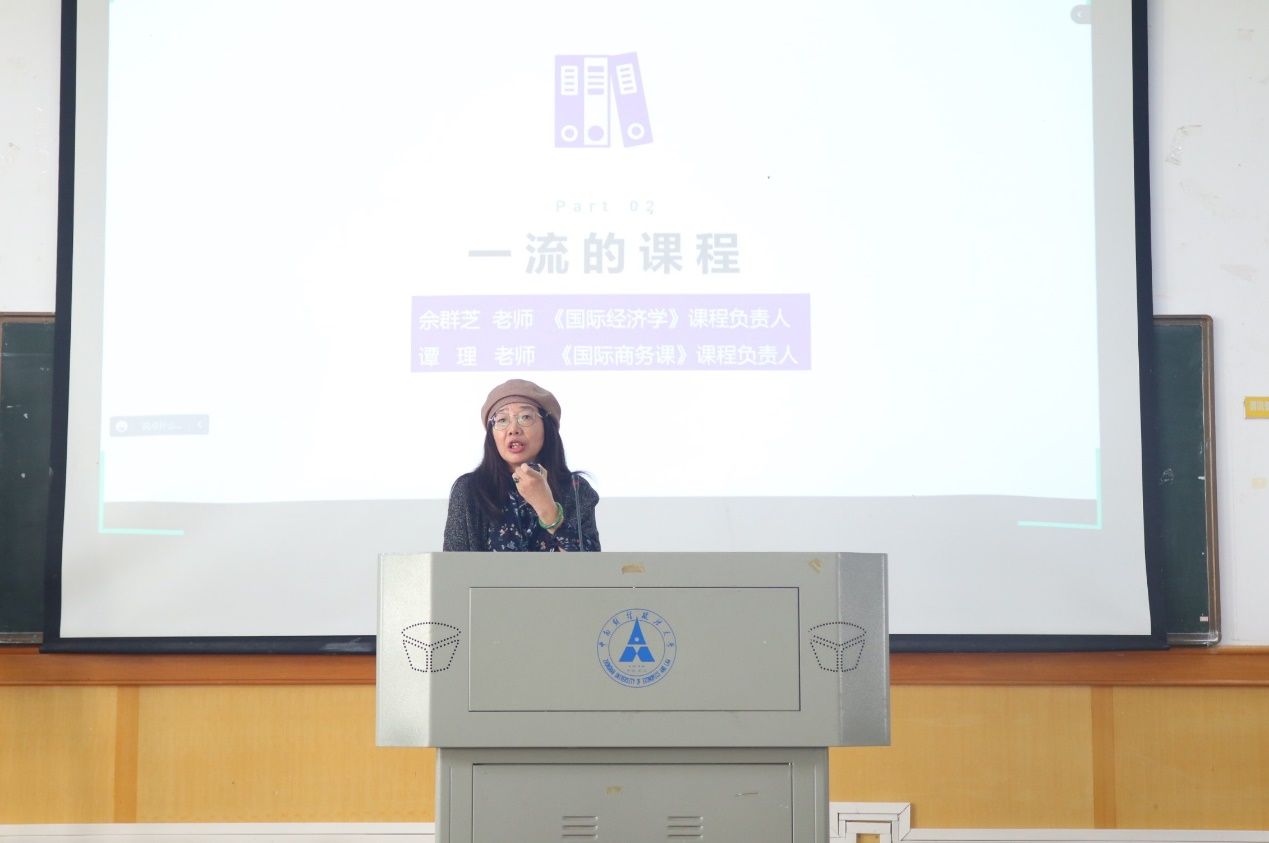 会议伊始,由吴姗姗副主任向大家简单介绍出席本次会议的优秀教师以及国际商务专业大致情况,引起同学们对该专业的初步认识。