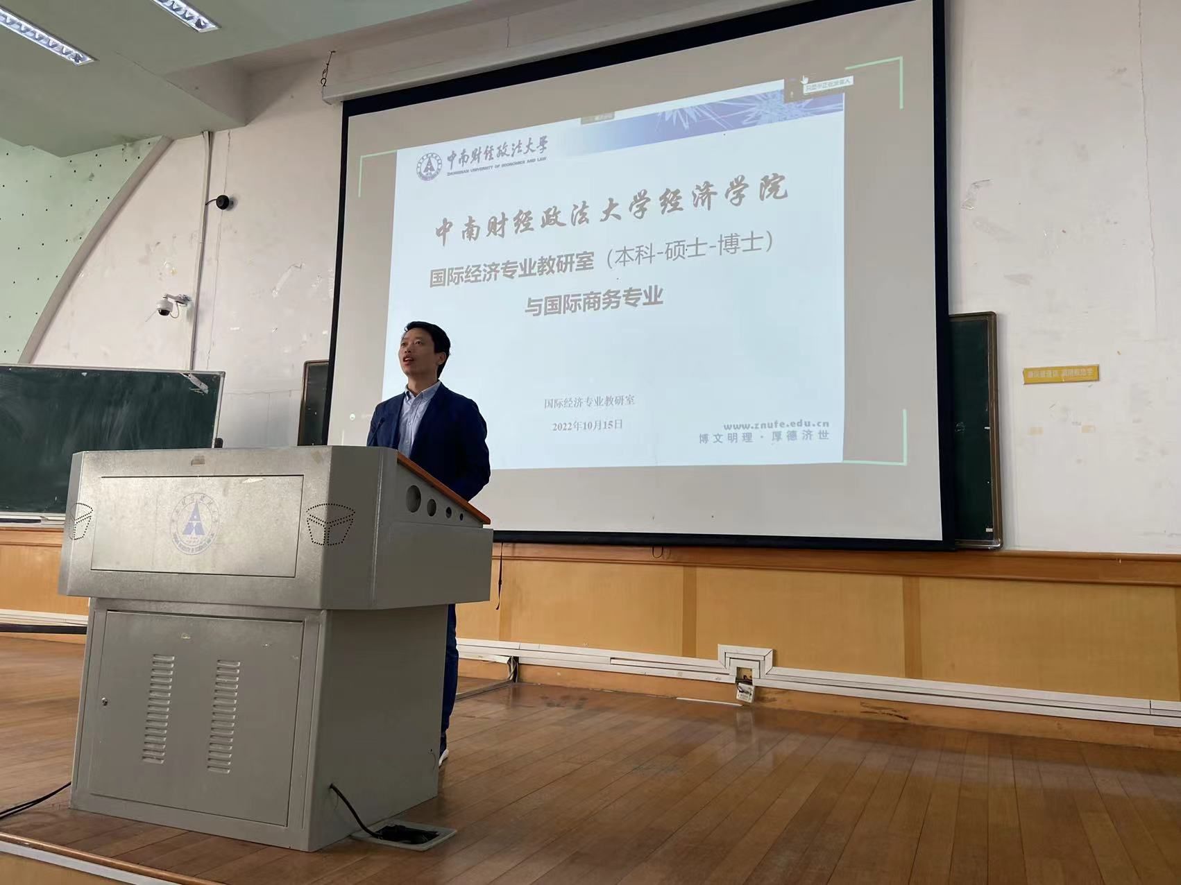 (学生记者田怡可 摄影郭宇航)为使经济学院2021级本科生更好地了解经济学和国际商务专业的基本情况以及未来发展方向,学院2021级国际商务专业分流推介会于1015日上午在文澜310室顺利举行。出席会议的有国际经济学系潘安主任、国际经济学系吴姗姗副主任、国际经济学教研室李小克主任、国际经济学系佘群芝老师、世界经济教研室谭理主任、世界经济教研室黄赛男老师、人口、资源与环境经济学教研室杨柳青青老师和全体经济大类的同学。