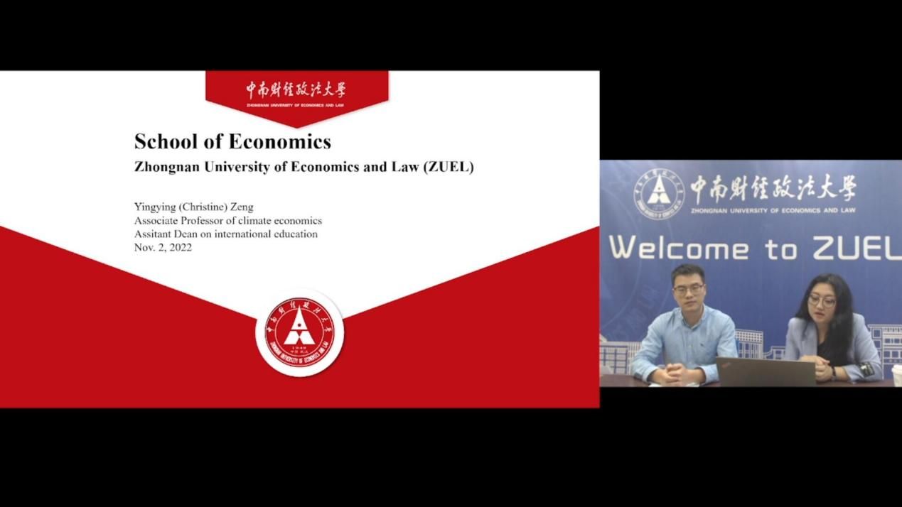 宣讲会上,首先,曾盈盈副教授从学院发展历程、国家优势专业和课程设置、专家师资队伍、人才培养、科学研究、国际交流合作、学生活动等方面介绍了我院基本情况,同时逐一介绍了各个专业和项目培养方案并以世界经济为例、详细介绍了学院国际学生项目的招生情况与培养特色,以及经济学院国际学生的就业情况及项目培养优势。随后,陈华飞老师就学校来华留学招生政策等事项进行了说明。最后,参会学生就学科专业、入学申请等方面进行了在线提问,两位老师都给予了详细、耐心的解答。