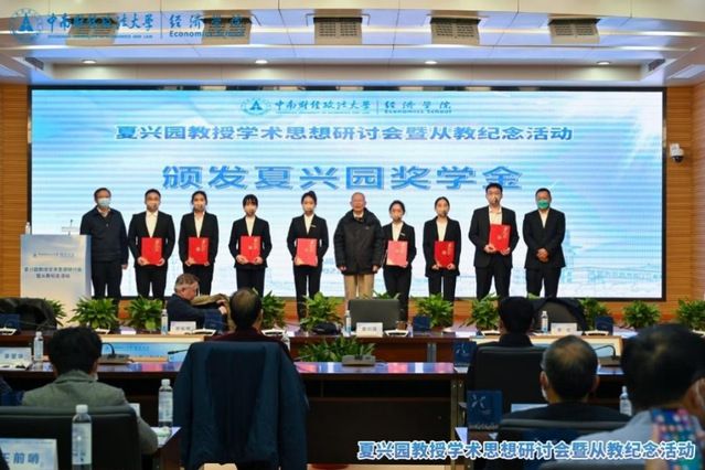 为了弘扬夏兴园教授严谨的治学精神,更好地推进我国经济学人才的培养,夏教授的学生们在2008年的六十周年校庆上捐资30万元,设立“夏兴园奖学金”,用于奖励品学兼优、热爱所学专业的经济学院学生。本次活动还举行了奖学金颁奖仪式,夏兴园教授、覃红副校长、陈行校友共同为7位优秀学子颁发了2022年度的“夏兴园奖学金”。