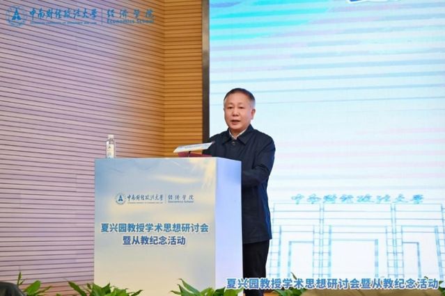 杨灿明校长在致辞中对本次活动的意义做出充分肯定,对夏兴园教授表达了崇高的敬意。“夏兴园教授等老一辈经济学人筚路蓝缕,在研究上追求高质量、超前性,在实操上讲求高起点、实务性,形成了理论联系实际、学识贯通中西、勇于开拓创新的学风,具有鲜明的学术特色和理论风格,也为经济学学科的发展注入了鲜明的时代底色”。他被学术界誉为“中国地下经济学的拓荒者”,填补了中国地下经济学研究领域的学科空白。夏兴园教授研究生毕业后就留在中南大任教,“从教六十余年一门心思育人才,三尺讲台写春秋”,为国家经济社会发展培养了众多人才,注入了强大力量。“夏兴园教授是中国经济学界的宝贵财富,是湖北省社会科学界的宝贵财富,更是中南财经政法大学的宝贵财富”。杨灿明校长指出大家应深刻领会夏兴园教授的理想信念、治学态度以及育人理念,深入研讨夏兴园教授的学术思想,进一步发扬光大先生之清风,先生之大德和先生之厚学,为新时代立德树人事业增添更加强劲的力量。