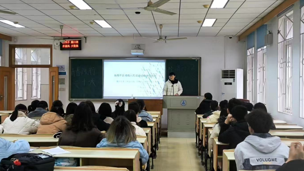 (通讯员:田鹏程)224日上午,经济2203班以“青春践行二十大”为主题,在文泽101教室举行了新学期第一次主题班会,辅导员周琼老师和班级导师李珊珊老师与同学们进行了面对面交流。