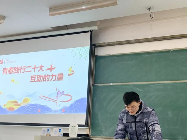 经实1901班的庾泽诚同学分享了坚守理想信念的思考。首先回顾了党的二十大报告的主要内容,向同学们表明了践行二十大就是要心怀家园、提高专业素养、将个人理想融入到中国梦之中,倡导同学们勇扛责任担当、立足当下,走好人生的每一步。经统1901班的雷金鹏同学分享了对于互助的思考,结合疫情期间的现实体会谈到了成就事业需要互助。经法1901的姜榕应同学结合自己参与志愿服务和公益活动的实践,分享了互助中的体会。