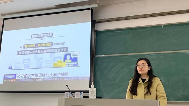 雷菁老师首先向同学们介绍了近期年级工作安排,提醒同学们开学期间要注意增强个人防护意识、注意人身安全防范。接着,雷菁老师带领全体同学观看了公安部发布的常见针对大学生骗局宣传视频,再次向同学们强调了要增强安全意识。