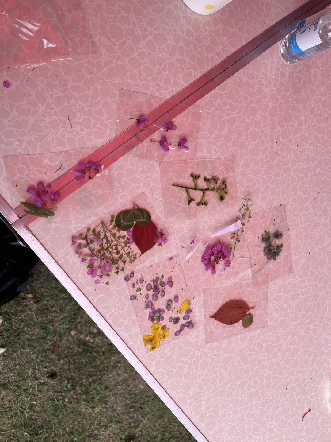 在活动举办的过程中,天上下起了淅淅沥沥的小雨。尽管天气较为寒冷,小组成员还是克服了困难,在活动地点布置好摊点。由于天气原因,在外出行的同学很少。但小组成员并未因此气馁,而是在校园里的各个角落里去收集落花、落叶。在此过程中,“春雨细如尘,楼外柳丝黄湿”真切地映入生活。那些校园里熟悉的一花一木,在此探寻下,给人带来的是不一样的惊喜。最后,在同学到来之前,小组成员已经制作出标本的范例。