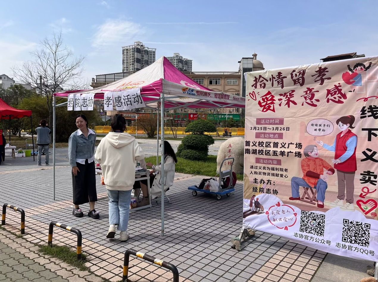 3月25日,中南财经政法大学首义校区率先开展了第一天的爱心义卖活动。经过活动小组成员的统筹安排,志愿者们按时来到活动场地,有序领取物资后都迅速前往自己的岗位。固定摊点的志愿者们对来到摊点的每一位同学都充满热情,并耐心地给同学们介绍孝感活动的历史与意义。流动宣传的志愿者们也主动给过往同学介绍孝感活动,不少同学在聆听过后都决定为老人们献上自己的一份爱心。在志愿者们的积极努力和同学们的热情参与下,孝感活动的第一天义卖活动圆满结束。