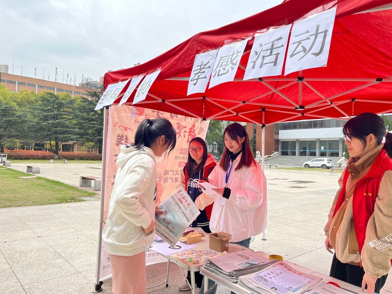 3月26日,中南财经政法大学南湖校区紧接着开展了第二天的爱心义卖活动。固定摊点的志愿者细心地给同学们介绍孝感活动,流动宣传的志愿者们也奔波在校园的各个角落,不厌其烦地给过往的同学一遍遍地介绍活动。每一份报纸或是一张明信片卖出,代表着的都是对于老人们的爱与关怀,展现着中南大学子至诚至善的内心。