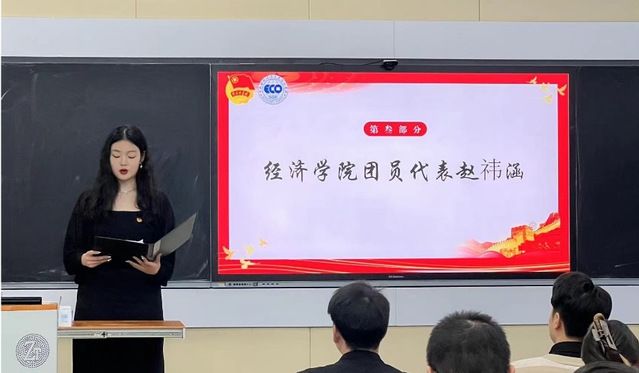赵祎涵同学作为优秀学生代表进行发言。青年人是马克思主义理论实践创新成果的发扬者,在学习中进步,在实践中成长,在奉献中升华,是我们对“青年马克思主义者”的深度诠释。