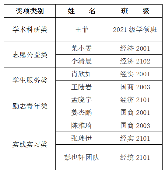 【公示】经济学院2022-2023学年“经英中南”之十佳青年