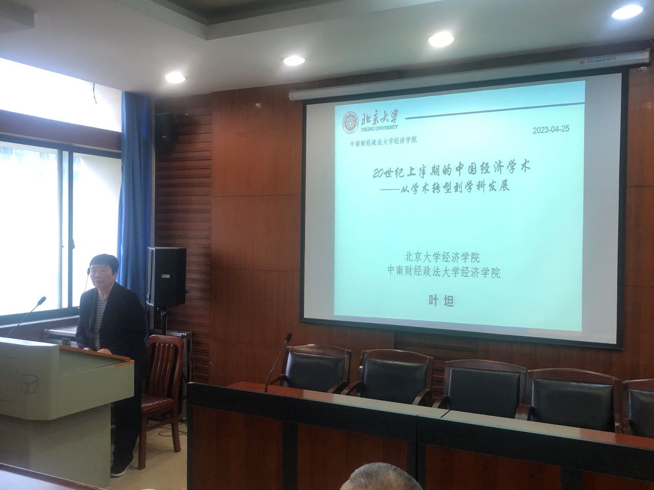 2023年4月25日上午,【文澜高端论坛系列活动】第26期叶坦教授讲座第一场在文泉楼南206会议室成功举办。本次讲座由半岛线上平台主办,北京大学讲席教授,中南财经政法大学“文澜学者”讲座教授,中国社科院经济所研究员,博士生导师叶坦教授应邀参加。叶坦教授以“20世纪上半期的中国经济学术——从学术转型到学科发展”为主题,从概览、回溯、演进、调研、学科五个角度分析20世纪上半期中国的经济学建设,分享了民国时期的经济学术研究概况、西学传入与制度变迁,并厘清经济史学的学科概念及方法论,最后落实到中国经济思想史的分析。参与讲座的有经济学院副院长宋丽智教授、经济学院朱华雄教授、常明明教授、瞿商教授、杨祖义教授、陈立兵副教授、张连辉副教授、王玲副教授、陈国涛老师以及经济思想史、经济史等相关专业的硕博研究生共40余人。