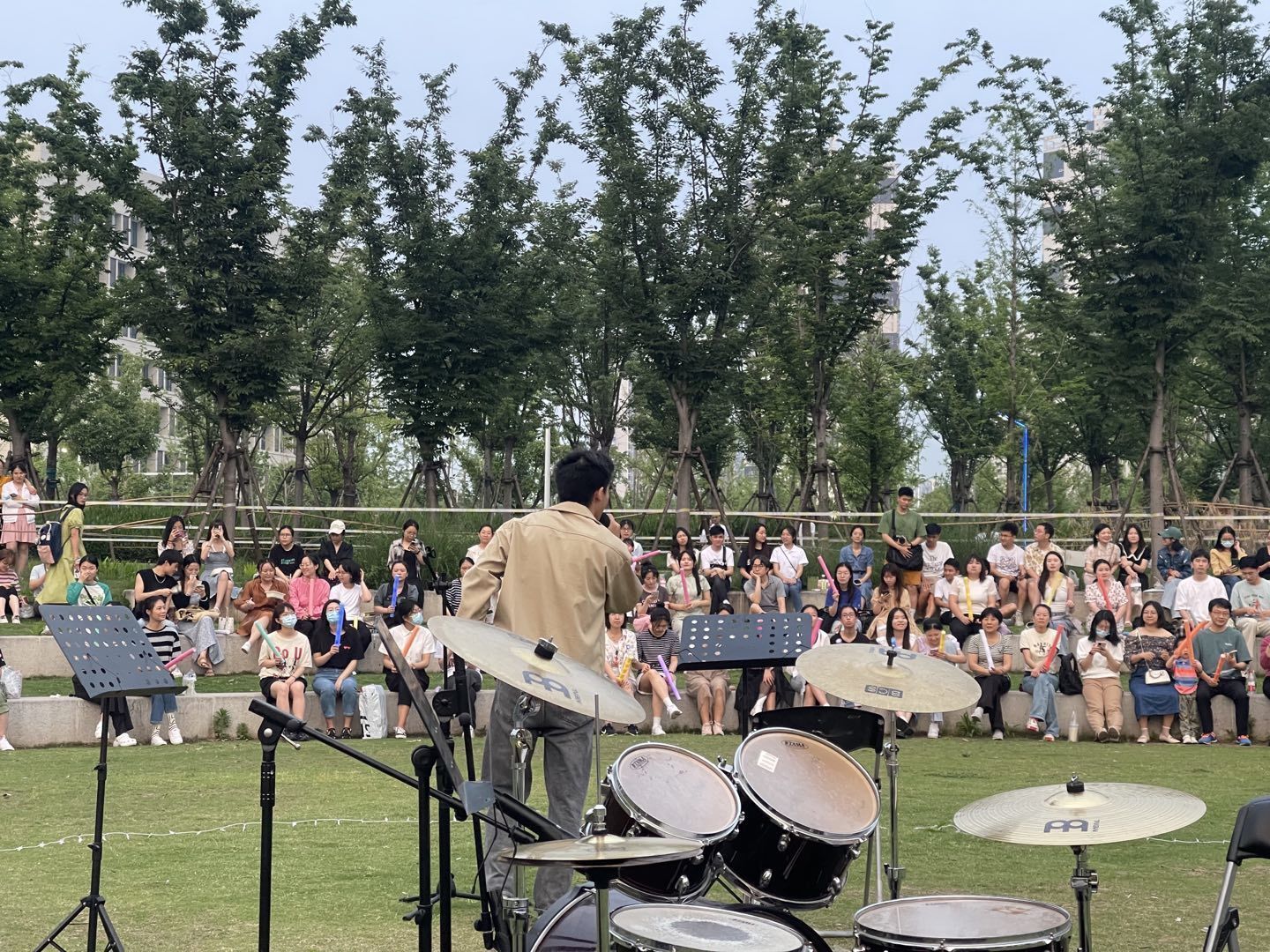 下午6点解忧打卡行活动结束后,各小组成员回到五羊广场摊点处集合,一同整理剩余物资并放回物资室。与此同时,另一组小组成员在三个小时的精心布置与准备后,晚上7点的草坪音乐会准时开始。由于活动前期的积极宣传,环湖绿道上聚集了很多闻讯赶来参加的同学,大家十分热情活跃,领取了荧光棒后纷纷挑选合适的位置坐下欣赏本次音乐会。草坪音乐会进行过程中,同学们参与兴趣浓厚,随着音乐的节拍挥舞手中的荧光棒,时不时跟着歌手一起唱,整场活动氛围格外和谐舒适。音乐会进行过程中穿插着的互动游戏及随舞也很抓人眼球,同学们都积极参与、热情欢呼。晚上930,在大家的欢呼声中,本次草坪音乐会画上了圆满的句号。从七点到九点三十,草坪音乐会陪大家共度了两小时三十分的美好时光,陪伴大家度过了一个难忘且浪漫的520日。