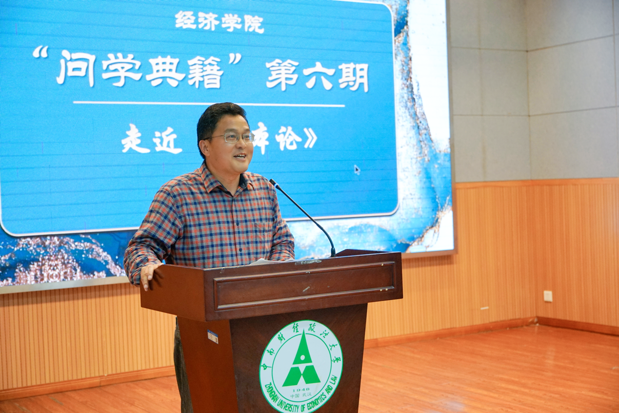 (通讯 陈远瞻 王学斌 摄影 唐彦可)书籍是人类进步的阶梯,典籍更是人类文明的沉淀和凝聚。5月25日下午,经济学院在南湖校区文潭楼一楼报告厅举办“问学典籍”第六期——走近《资本论》,本次活动由经济学院院长李小平主持,经济学院朱巧玲教授担任主讲嘉宾。校党委常委、副校长覃红,经济学院党委书记刘刚,党委学生工作部副部长石凌,经济学院副院长张鸿武、宋丽智,党委副书记俞凡及学工部、经济学院学办的老师们共同参与活动。