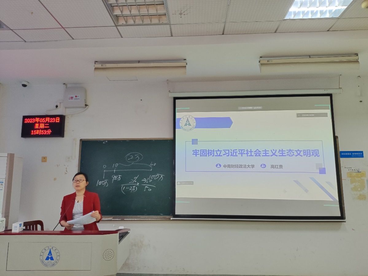 (通讯员:陈思琳)2023年5月23日下午16时,由高红贵教授主讲的第二期“同上一门思政课”活动在文泰楼209教室顺利举行。此次讲座的主题为“牢固树立习近平社会主义生态文明观”,共有50余名同学参加了此次讲座。
