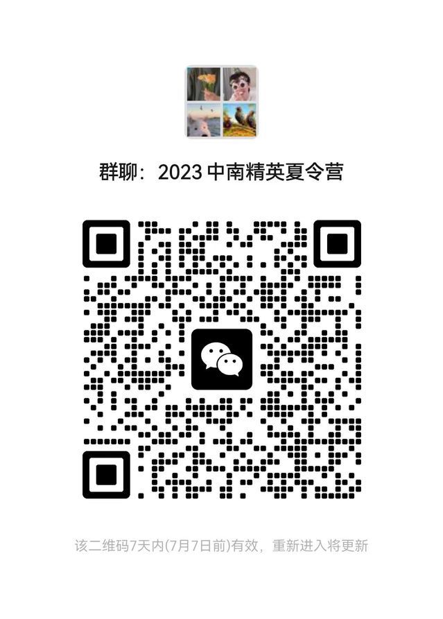 请获得参营资格的同学尽快微信扫码入群,入群后将名片改为“申请专业-姓名”。 如有营员因各种原因退出,请于7月1日17时前告知学院徐老师(到短信到15377552498),学院将尽快公布替补名单。