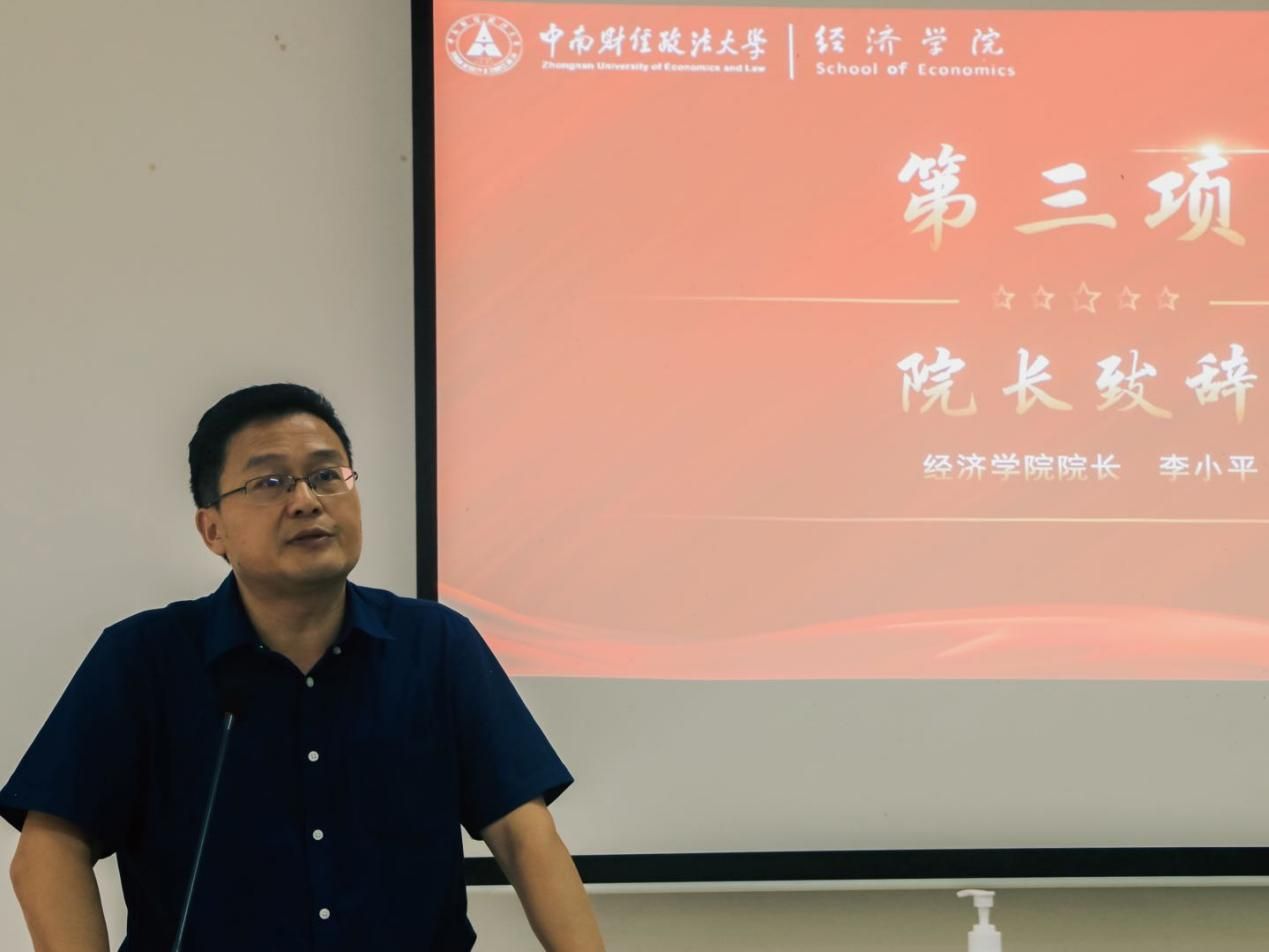 全体师生起立高唱国歌,典礼在庄严激昂的国歌声中拉开序幕。李小平院长对与会师生表示热烈欢迎,并向同学们介绍了经济学院优秀的红色基因、办学精神与学术地位等,同时强调了经济学院在人才方面的特色与优势。适逢中南大建校75周年,李小平院长在讲话中给予同学们殷切期望,向各位新生提出“立志树信,厚植家国情怀”“博学明理,力争全面发展”“慎思笃行,践行经世济用”的三点要求,呼吁同学们在大学生活中实现自我价值,抒写青春画卷。