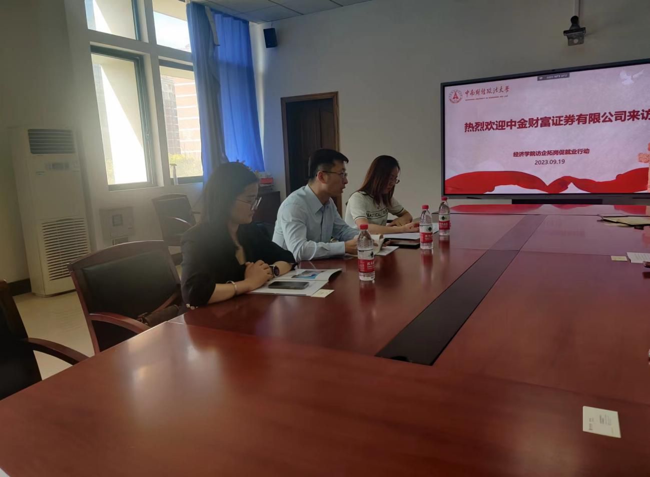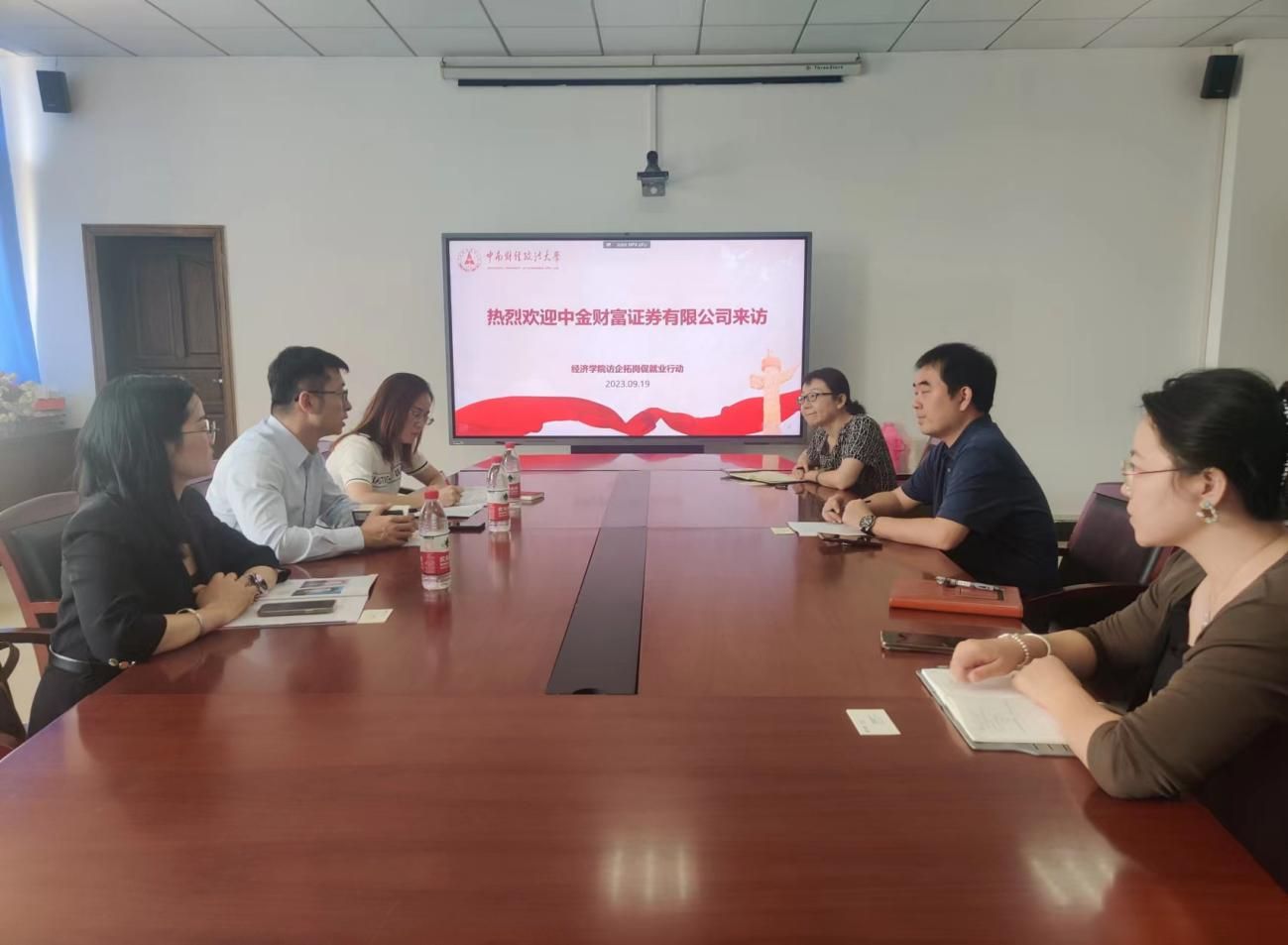 9月19日上午,中金财富证券有限公司来访经济学院,商讨校园活动方案的实施、应届生的培养计划等就业相关问题。中金财富证券公司营业部总经理代钦、投资经理骆东妹、尹小敏,经济学院党委副书记俞凡、研究生工作办公室主任岳明泽、2020级本科生辅导员孟庆红参加会议。