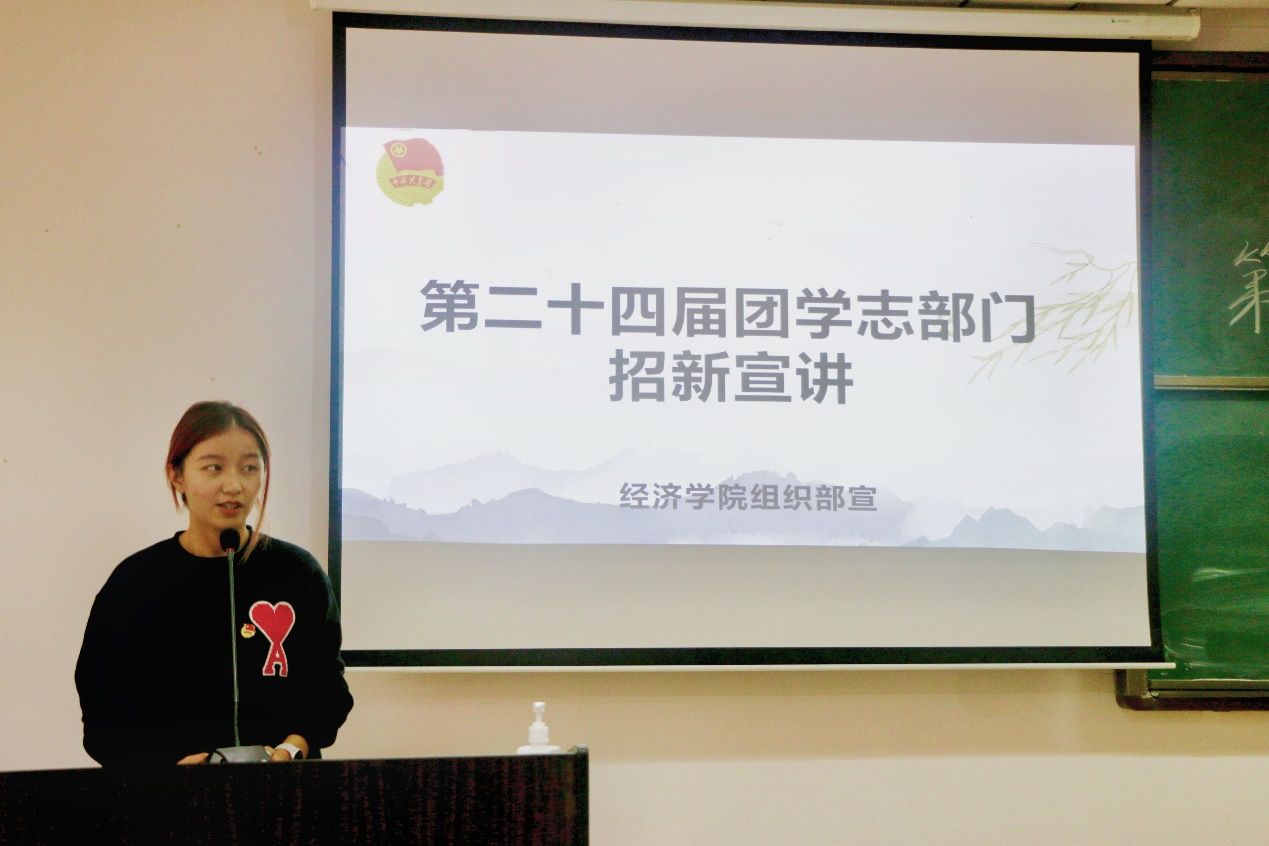(学生记者 朱雨昕 摄影 曾昊)丹桂飘香、荷花满塘,又是一年招新时。为使2023级本科新生深入了解经济学院分团委、学生会及志愿者协会(以下简称“团学志”)的基本情况,激发新生们的团学工作热情,经济学院2023年团学志招新宣讲会于9月22日下午在首义校区文润楼303室顺利举办。分团委书记陈远瞻、团学志各部门负责人及2023级本科新生参会。会议由分团委副书记杞欣蓓主持。