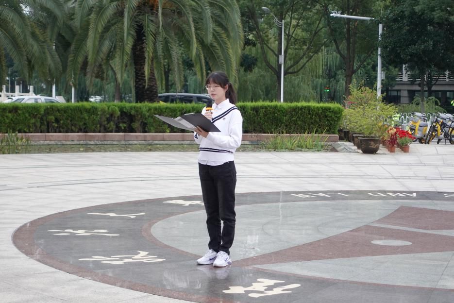 2022级入党积极分子王灿同学以“我执时代笔墨,信念镌刻心间”为主题进行国旗下讲话。她以“信念”为引,讲述古今仁人志士与时偕行,栉风沐雨的英雄往事,鼓励同学们“知于纸上,悟于行中,把握时代脉搏,用爱国之深情,书青春之华章。”