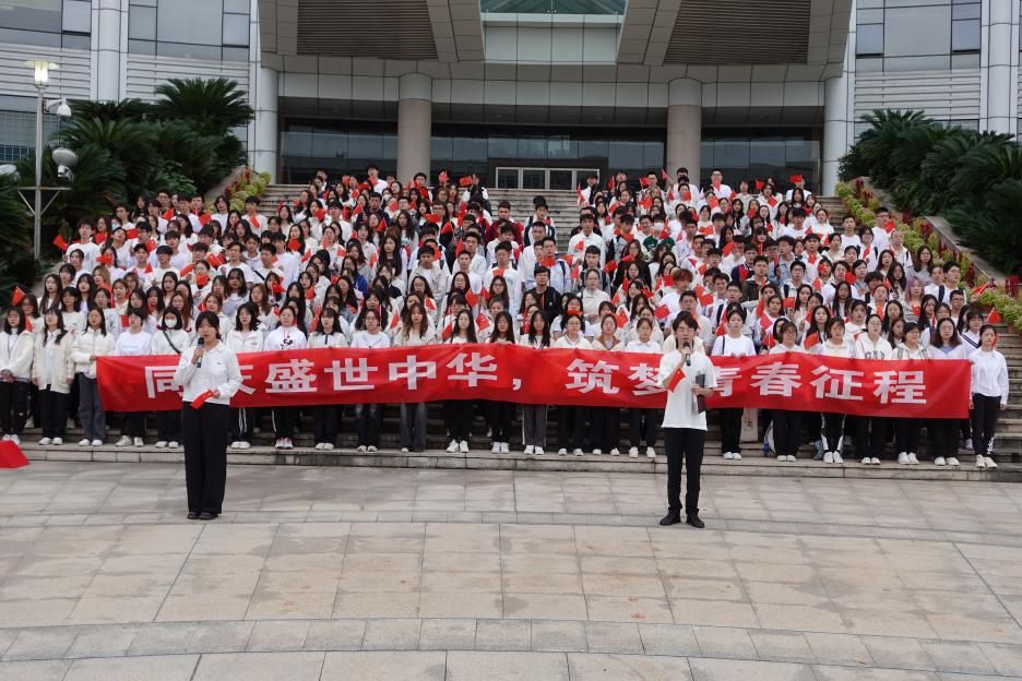 2022级全体本科生在国旗下齐唱歌曲《我和我的祖国》。歌声飞扬,唱出了经济学院师生对祖国的无限热爱与深深祝福,更唱出了所有中国人和祖国之间血浓于水的拳拳亲情,传达出同学们以青春献礼祖国的壮志豪情。