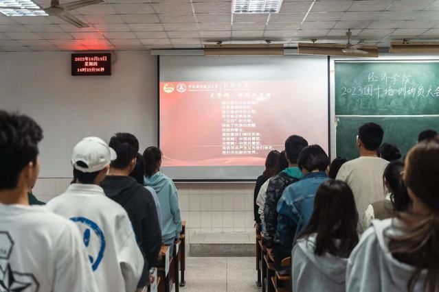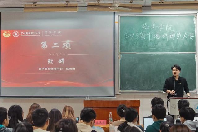 (学生记者 胡漪 摄影 何胤良)高扬信念之帆,勇担青年使命。为了带领分团委学生会(以下简称“团学”)成员们熟悉学生工作,增强团学队伍的凝聚力,经济学院“高举团旗跟党走 青春砥砺迸新芽”团干培训动员大会暨培训第一课学习于10月19日下午在首义校区文瀚楼201教室举行。本次培训特邀华中师范大学公共管理学院分团委书记张子规主讲,经济学院分团委书记陈远瞻、团学各部门主要负责人及经济学院2023级团学新学员到场参加培训。