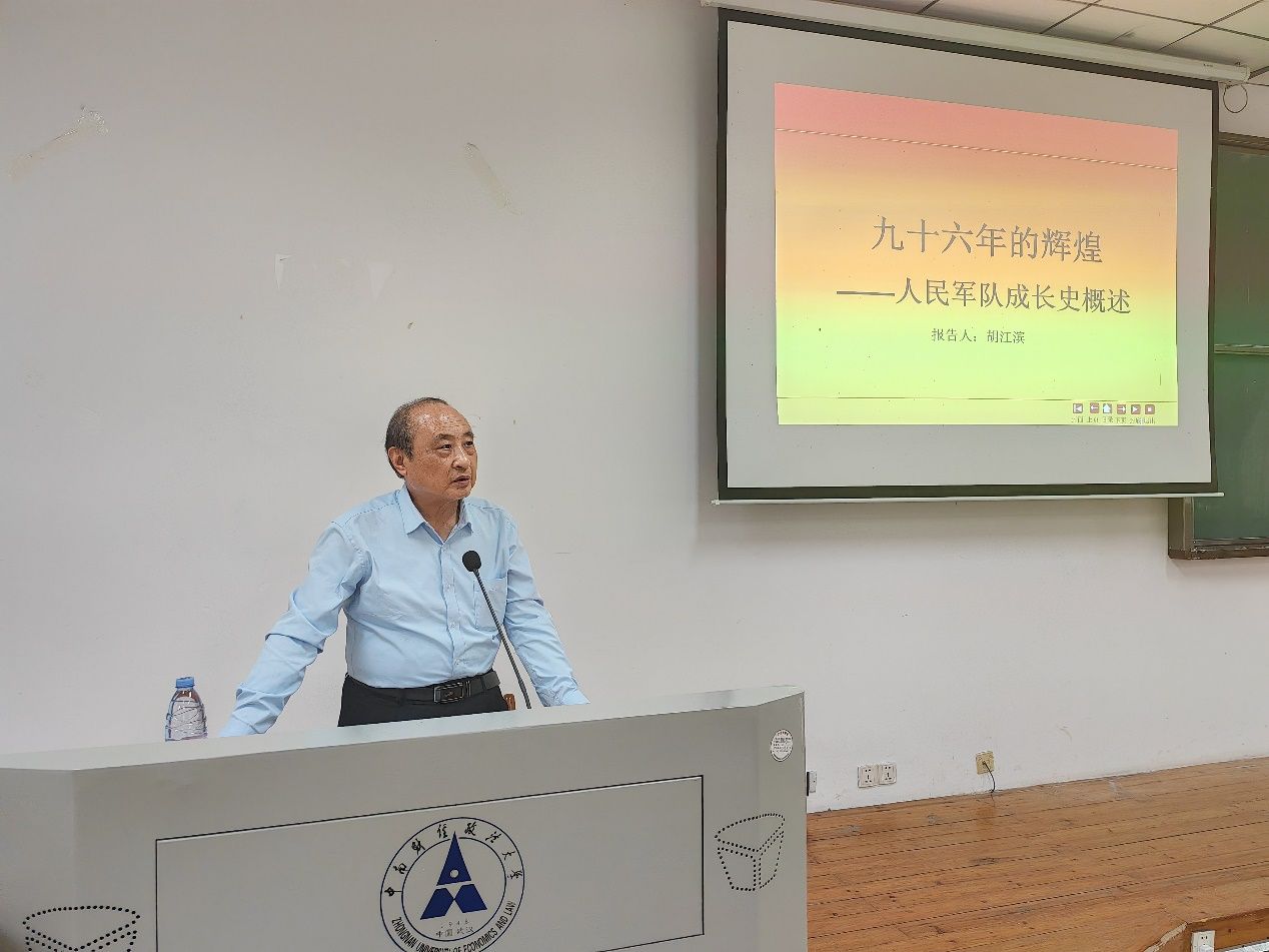 胡江滨教授从毛泽东同志缔造了人民军队、人民军队的原则是党指挥枪、人民军队战无不胜、强军兴军看今朝四个方面讲述了自1927年8月1日南昌起义以来,由中国共产党领导的人民军队光荣且艰难的建立、发展、壮大的历史过程。