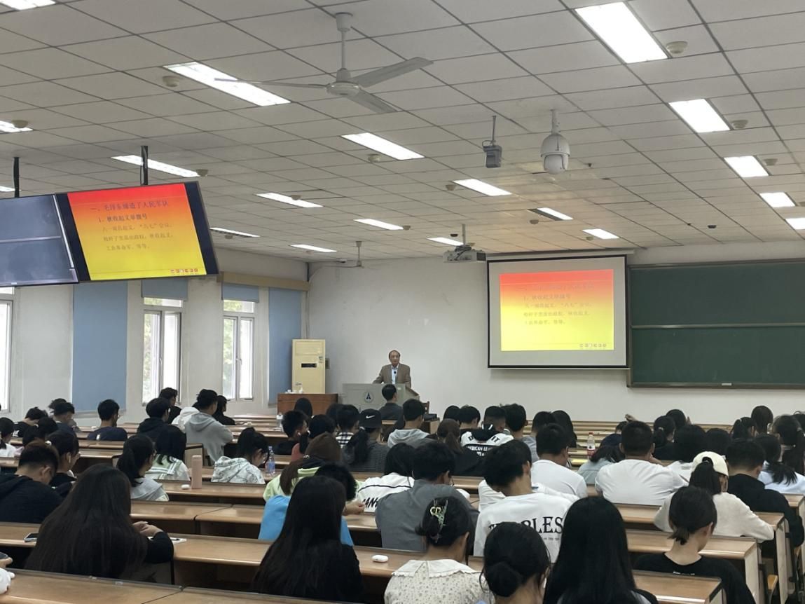 (通讯员 包伦娜 高枫博 林小敦 摄影 高枫博)万里山河,有你心安。为进一步加强爱国主义教育,强化国防意识,巩固军训成果,赓续人民军队的伟大精神,10月24日,经济学院于文泽楼303向2023级新生举办了“人民军队发展历史”主题报告会。本次报告会邀请了原经济学院党委书记、现学校离退休人员党委副书记、学校关心下一代工作委员会副秘书长胡江滨教授担任主讲人,经济学院党委副书记俞凡主持。2023级本科生辅导员包伦娜及2023级本科新生参与本次报告会。