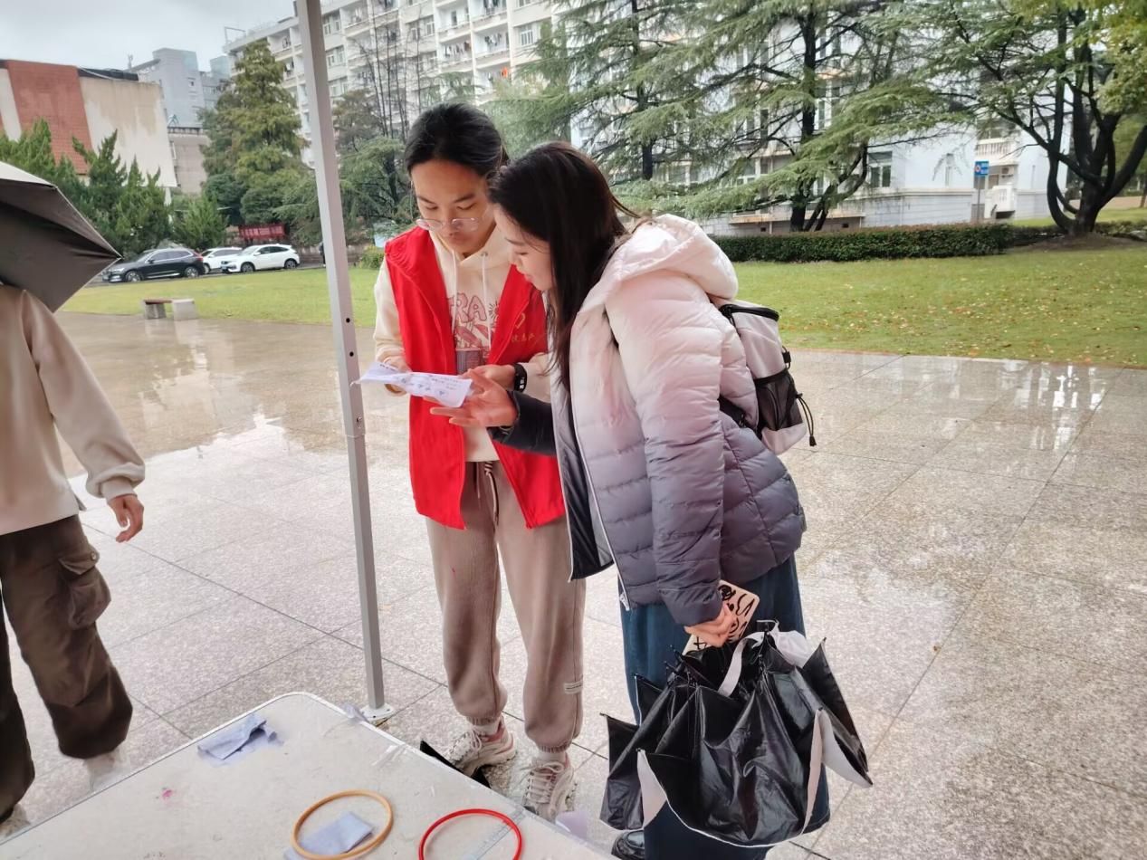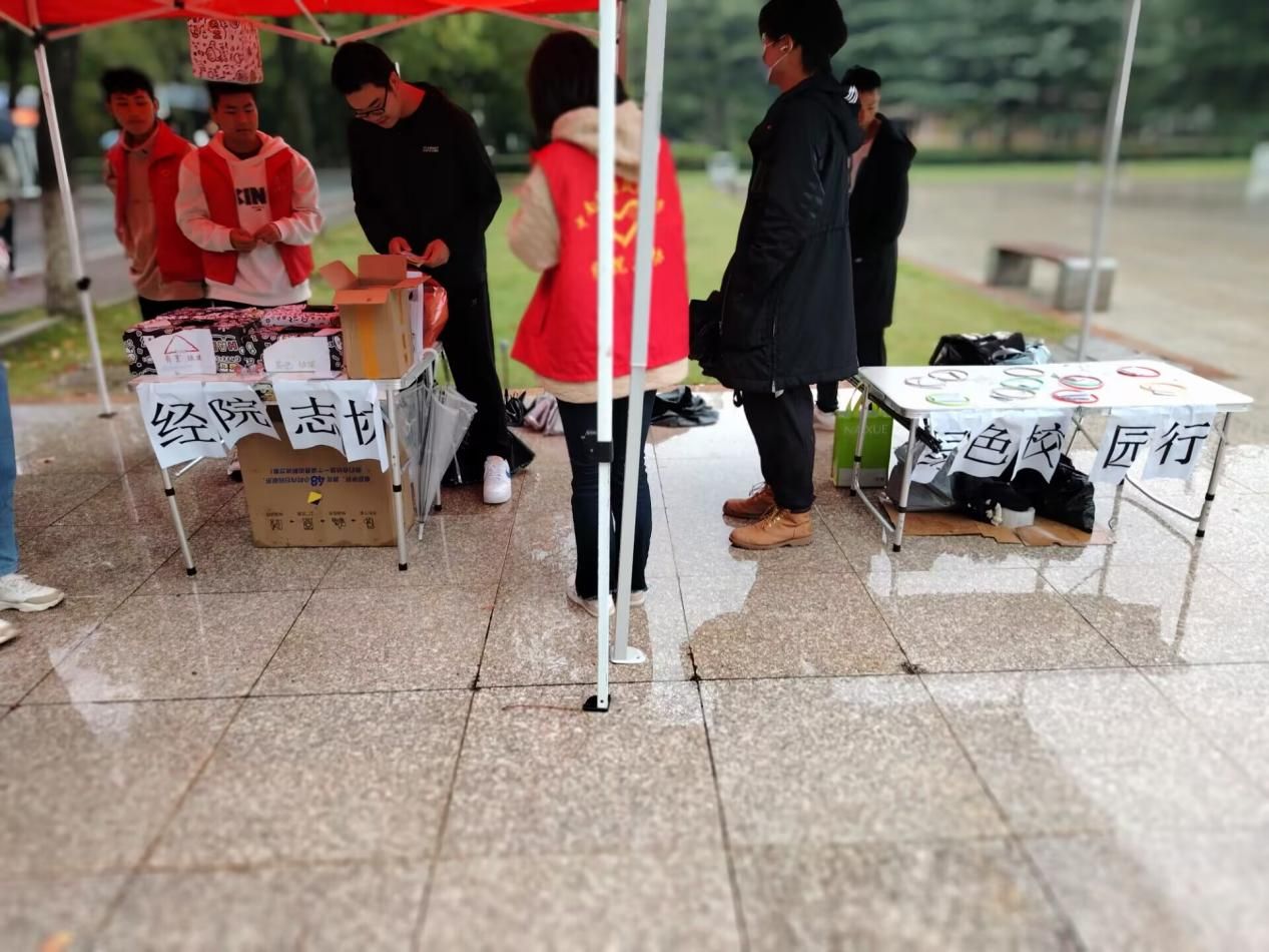 在活动开展当天下起了大雨,给活动的顺利开展造成巨大的障碍。但活动小组成员仍怀着饱满的热情,早早来到摊位,积极负责地完成自己的任务。由于人流量较小,成员们便自发的主动招揽路过的同学,并在社交软件上转发介绍本次活动,在校园内传播绿色精神。在问答游戏中同学们大多表现优异,传播环保知识任重而道远。尽管在细致的垃圾分类上同学们仍是小白,模拟垃圾分类游戏中同学们也犯了许多的错误,但通过这次游戏大家的知识储备都有了很大提升。意见箱也收获了许多建设绿色校园的宝贵意见,同学们发现了生活中浪费等不环保现象,借由此次活动提出了自己的看法建议,为形成绿色风尚建言献策。