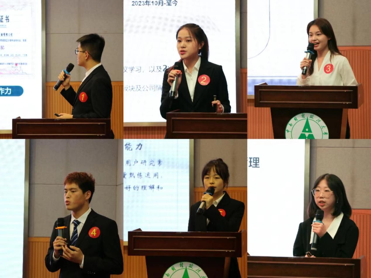 此次决赛邀请到前程无忧国家高级人力资源管理师陈清清女士、ACI高级国际礼仪导师张芸卿女士、BCC全球生涯教练魏超女士、前程无忧校园招聘宣传负责人张闻笙女士及中信期贷中南分公司人力资源岗专家方赢女士担任评委。经济学院党委副书记俞凡、党政办公室主任张可、团委书记陈远瞻、2020级本科生辅导员沈鹏飞及2023级本科生辅导员包伦娜出席本次活动。经过初赛、复赛的层层选拔,共有6名选手成功闯入决赛。