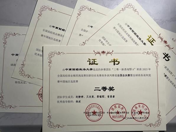 本次谈判团队由经济学院国际商务专业的赵静婷、贝欣宸、黎韫颐同学和统数学院曾晨睿同学组成,在经济学院杨波教授的指导下,通过知识挑战赛和全国预选赛,顺利晋级全国总决赛。经过激烈的角逐,我院的谈判团队不仅展示了扎实的专业知识和丰富的谈判技巧,还表现出较强的团队配合能力和创新思维,最终“三粤一新勇闯鄂A”团队荣获全国总决赛暨中国地区二等奖,队长赵静婷荣获“最佳谈判手”称号。