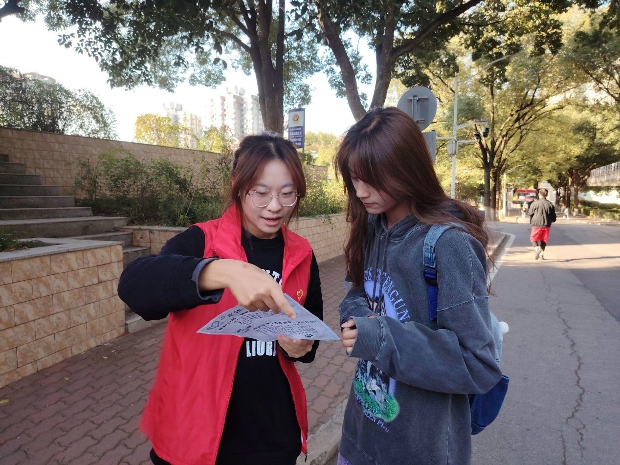 活动进行期间,各小组成员按照排班时间准时到达活动地点交换班,交接宣传单、报名表等物资,并对接工作情况与进度,配合得当。在值班期间,结合先前的安排及校园人流情况,小组内每个成员都按照组长的安排在规定地点进行流动宣传或摊位宣传,尽可能地放大每一个人的影响力,最大程度宣传志愿活动,吸引更多途经同学。在每个成员值班期间,他们都手拿宣传单为对志愿活动感兴趣的同学们详细介绍每个志愿活动——银龄行动、传温递爱、孝感活动、长江活动,邀请他们参与公益志愿活动,享受纯粹大爱。活动期间,成员们也纷纷举起相机,记录进入经院志协的第一次工作,也记录下志愿精神的传递。
