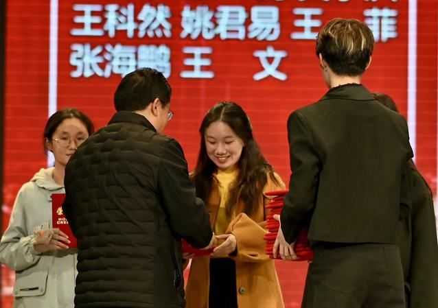 在精彩的表演后,李小平院长代表学院为2023年获得奖学金的同学们颁发荣誉证书,激励同学们再接再厉,勇攀高峰,继续为经院学子增光添彩。这些同学身上有着过硬的知识本领、优秀的学习品质,引领着经院学子在求学的青春之路上愈发坚定与昂扬。