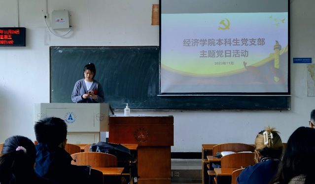 (通讯员:胡迈)为巩固深化主题教育成果,贯彻落实巡视整改要求,深入推进“一融双高”建设, 11月24日下午,经济学院本科生第三党支部在南附204室开展了十一月主题党日活动。本次活动由支部组织委员毛怡婷主持,经济学院本科生第三党支部全体党员参加了此次活动。